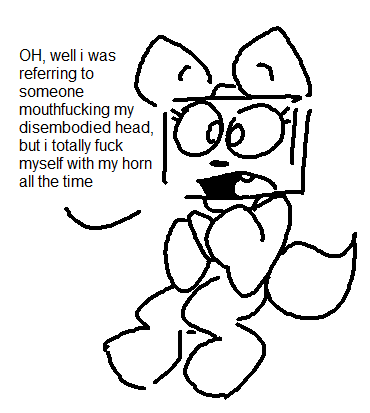 >>40882 Wait one second, you did try the disembodied head idea before! What does that even mean?! Did you have sex without your head? Or did you use your head to give yourself a blowjob? Or did you use your horn to pleasure yourself? That idea that you tried rises a lot of more weird questions