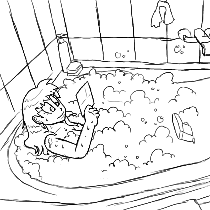 Farmer wanted to see Sarah doing some girly things, so here she is enjoying a relaxing bubble bath with a waterproof e-book.