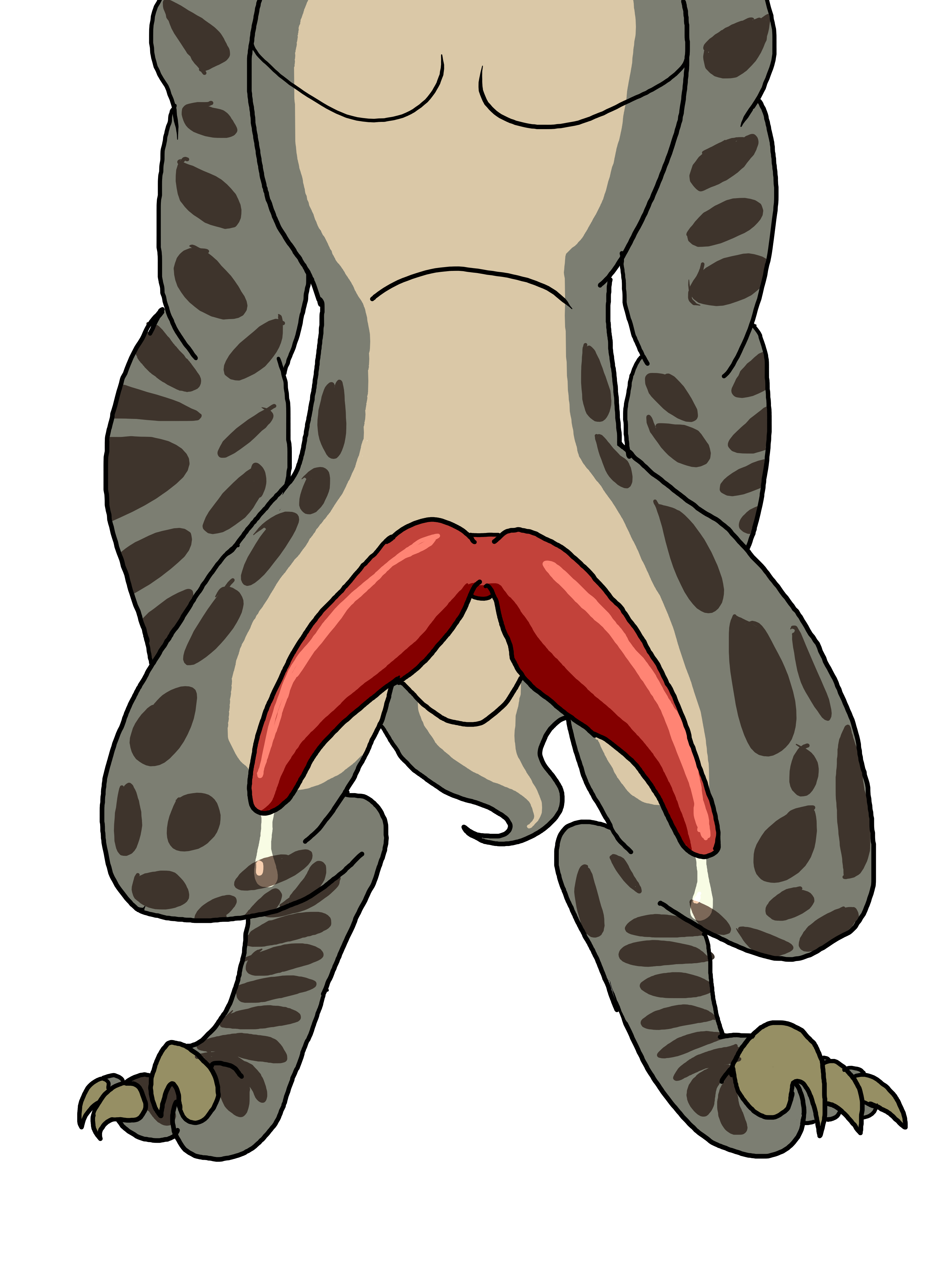 Female Deathclaws have a mixture of a psuedopenis and ovipositor, enabling them to implant their eggs inside another creature (In this case, our Intern, Belle) so they can be incubated more efficiently. The eggs are about the size of baseballs, and weigh anywhere from 8-16 ounces, and take 30 days to hatch. Young Deathclaws take 5 years to reach Maturity, and live for around 30.