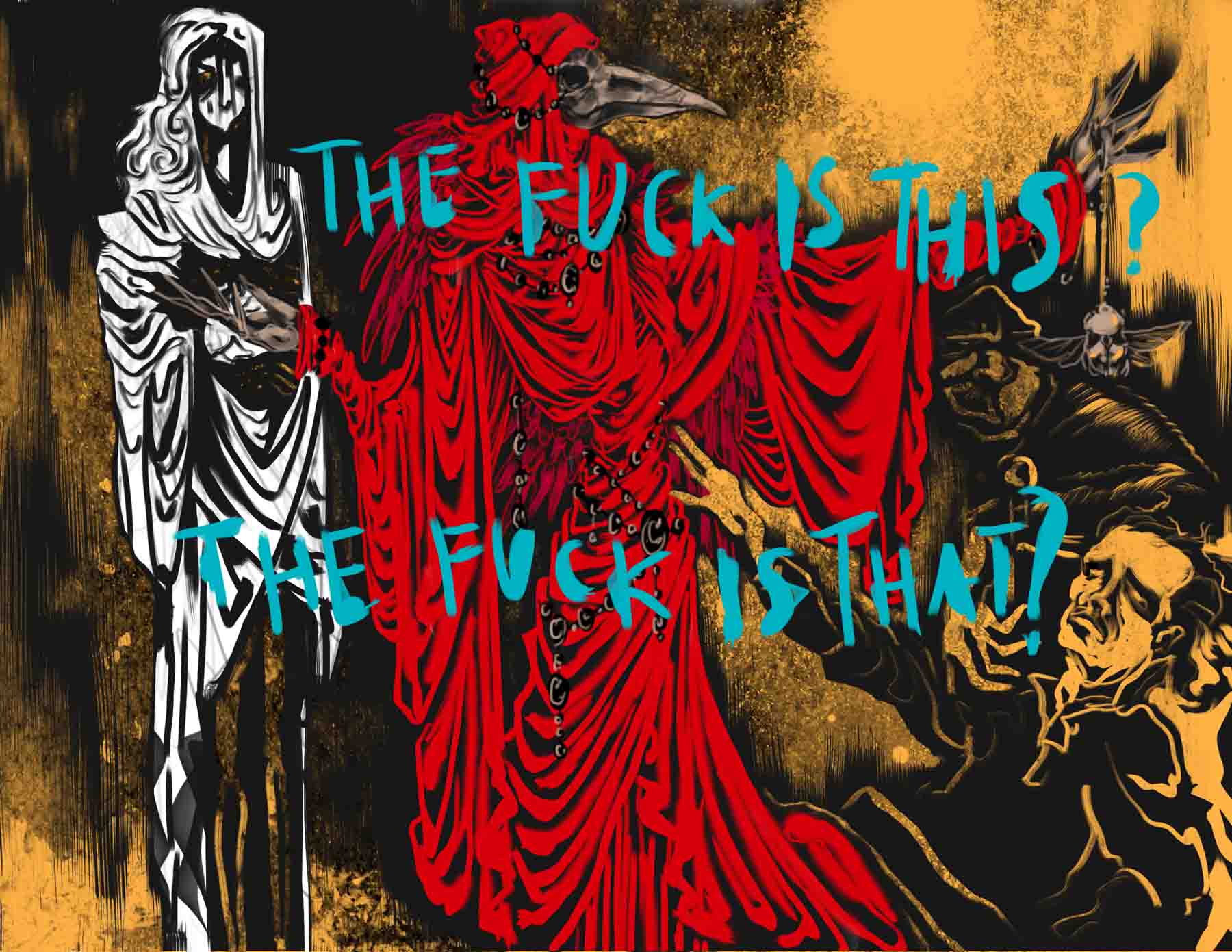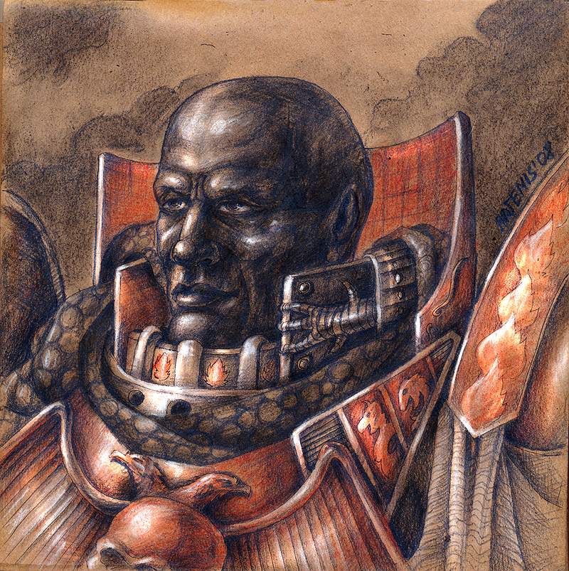 for 20€ and up, I have no accurate idea of what I could exactly do, but it could be something along the lines of the Duke Sliscus from a moth ago, or a simple ink painting, or a complete scene with several characters and a background. To give you an idea, I'd say that the Swarmlord pic would cost about 25€ ( 35$, appr) or enough to buy a couple of metal albums from my local music store, anyway.