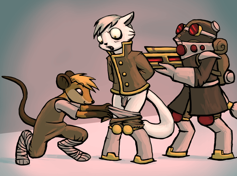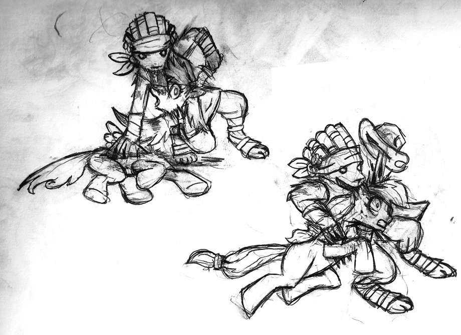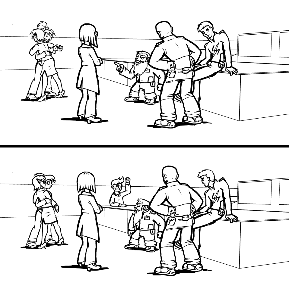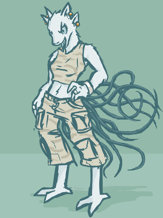 Usually this is one character just standing around on a backgroundless plane of existence.
