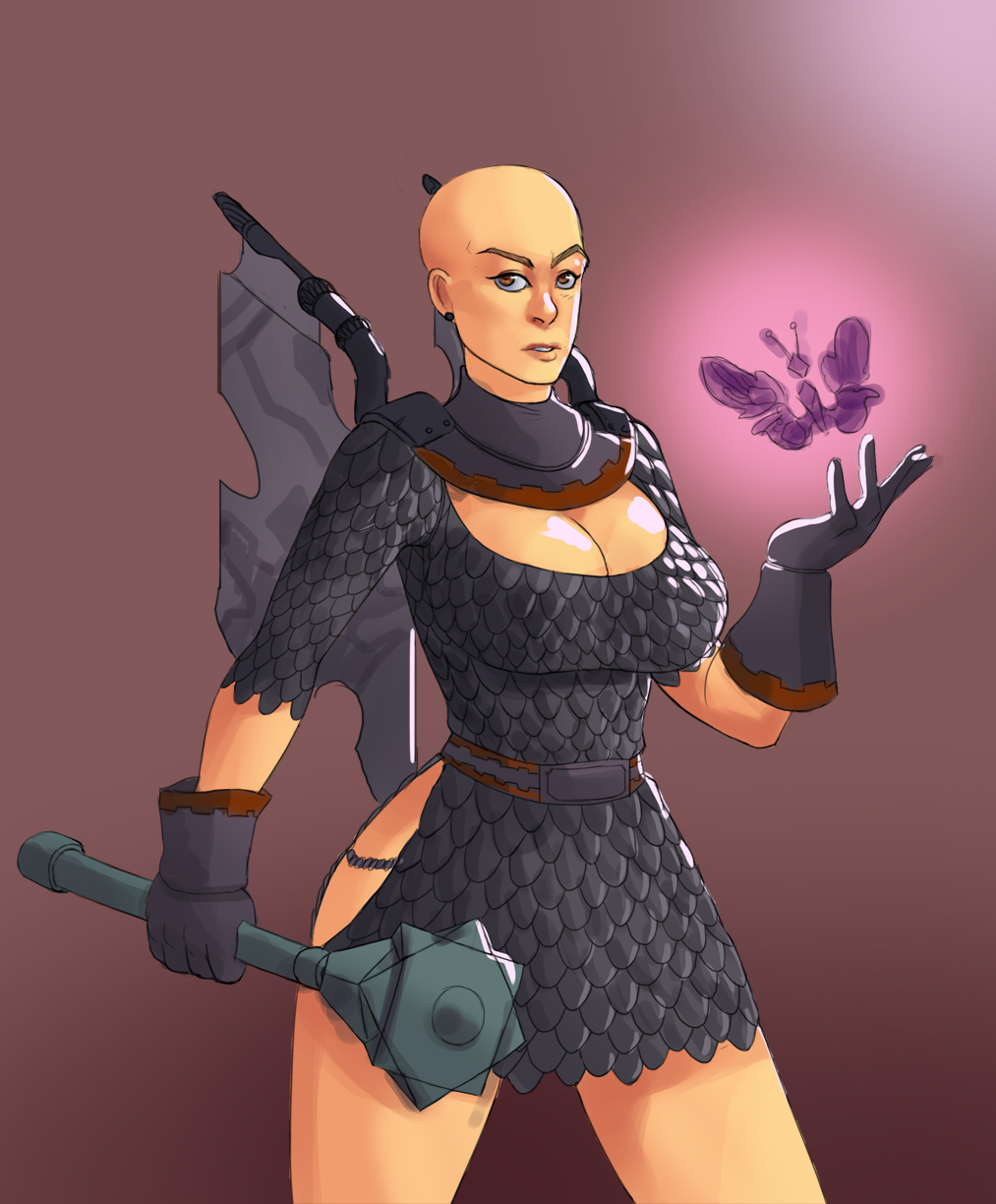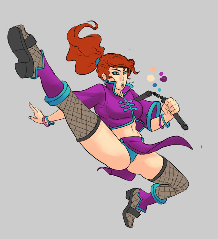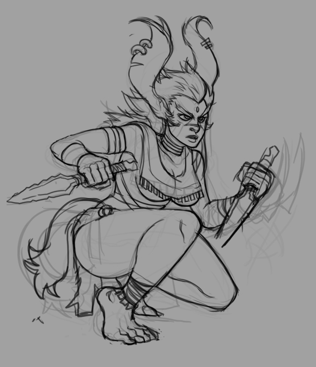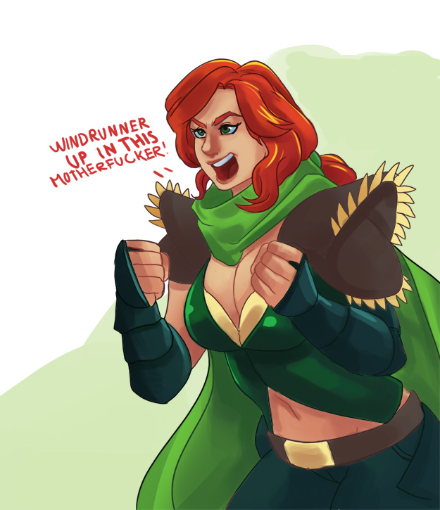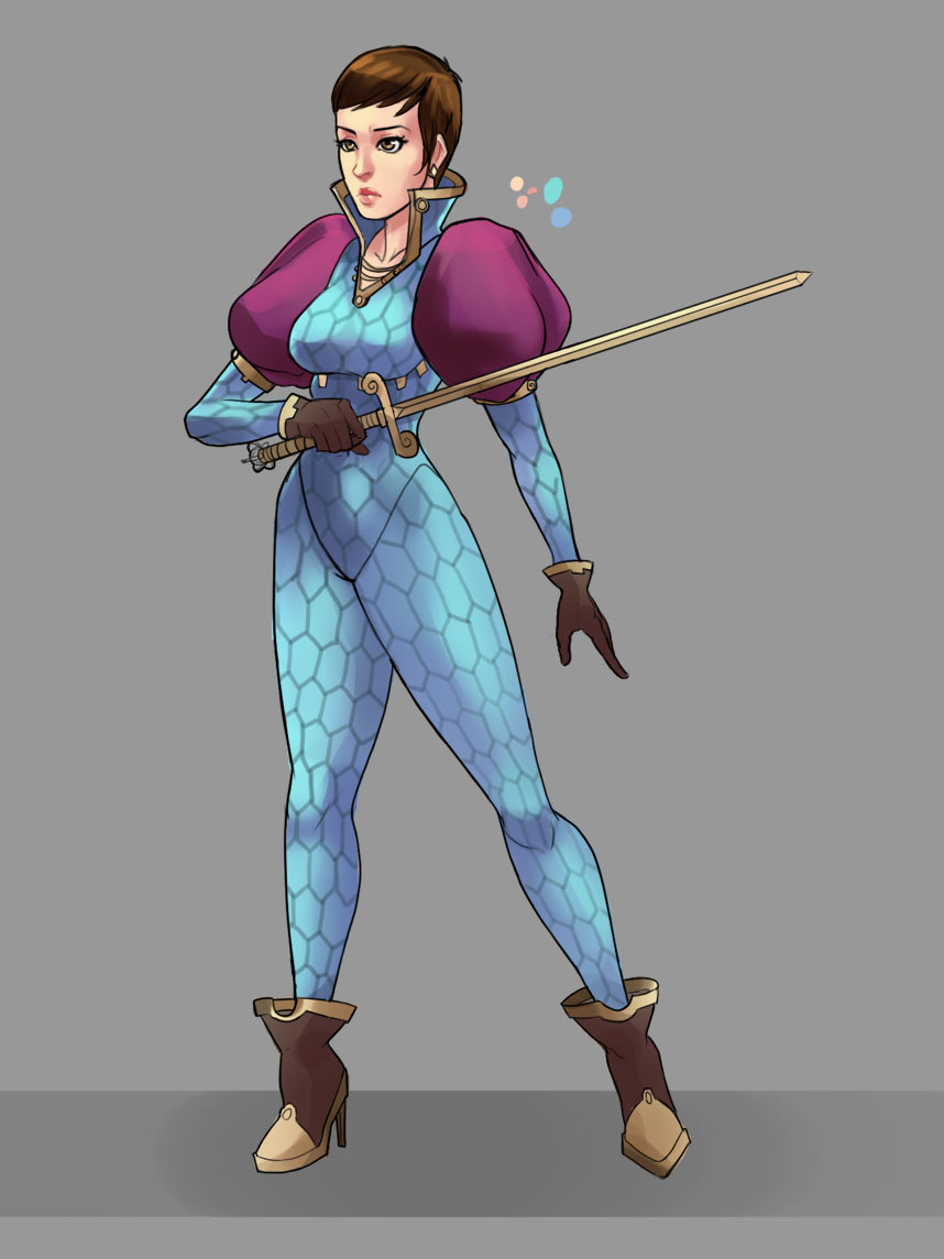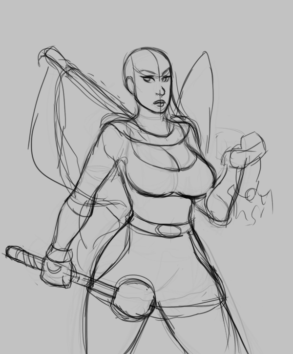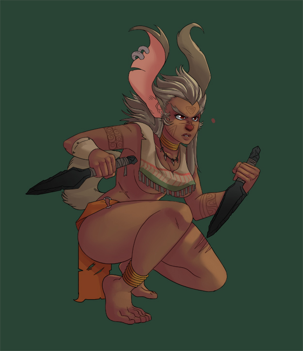 Pic related, it's Freya. Though in Someone Else's writing she has braided hair. She is described as boisterous, friendly and tactile (nips other peoples ear, hugging, stuff like that). Draw her, if you do, as a 20-25 year old.