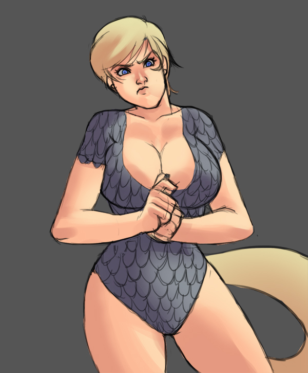 My request is this: either draw her in that outfit, or if you prefer, cheesecake it. I was thinking of she only wearing the cloak and nothing under, revealing as much or as little as you want. She has a 'come hither' look about her.