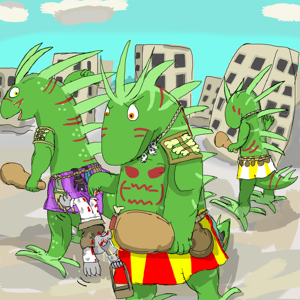 You find a stone and wrap a psuedopod around it, using it to tap on the monolith. It rings with a curious reverbation, and in response dark psuedopods emerge from the seam in its material. Three of them, rising up, with fractal branches near the ends that terminate in dark, blunt claws.