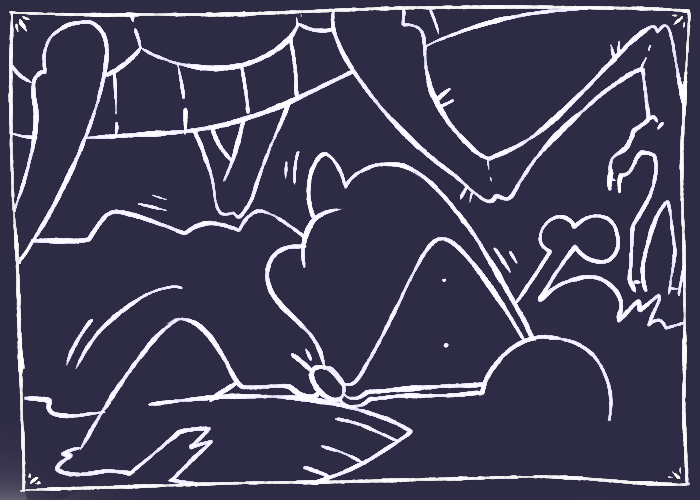 A hand reaches out from the darkness, and then another, and another. A form pulls itself around the corner, fingers digging into gaps between the heavy stone walls, mandibles chattering excitedly, body held high off of the bones you rest upon.