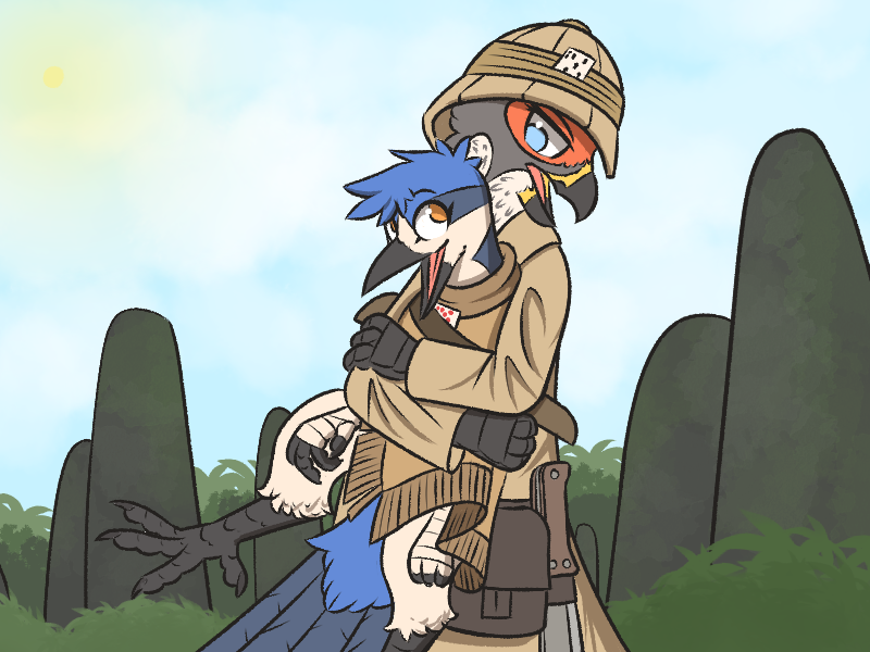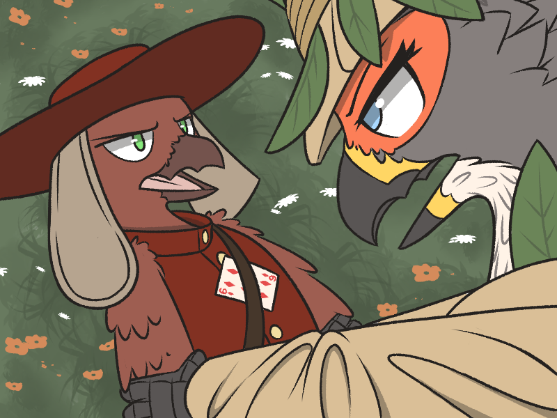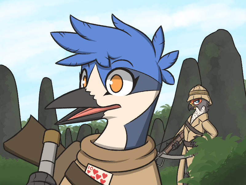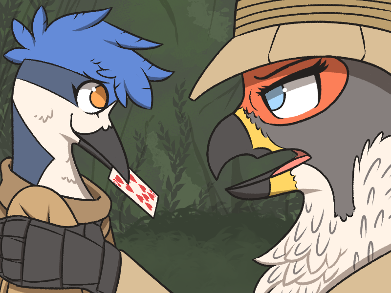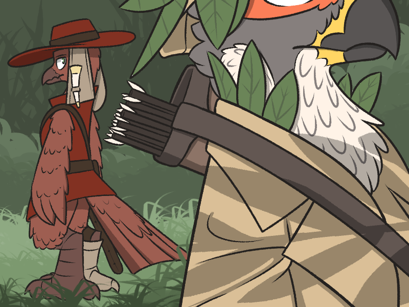 >"Only one, there was an ave wearing a bunch of armor. It was pretty far away so I couldn't see what card they had. So, what do you say? Think we can uh, help each other out? If only for this one time! I know some hunters like to hunt alone, and that's cool and all, but I wanna see what a real hunter's like! It's up to you what level of involvement we have together, if you want, I can just find targets and let you choose who to go for, nothing beyond that, if you liked."