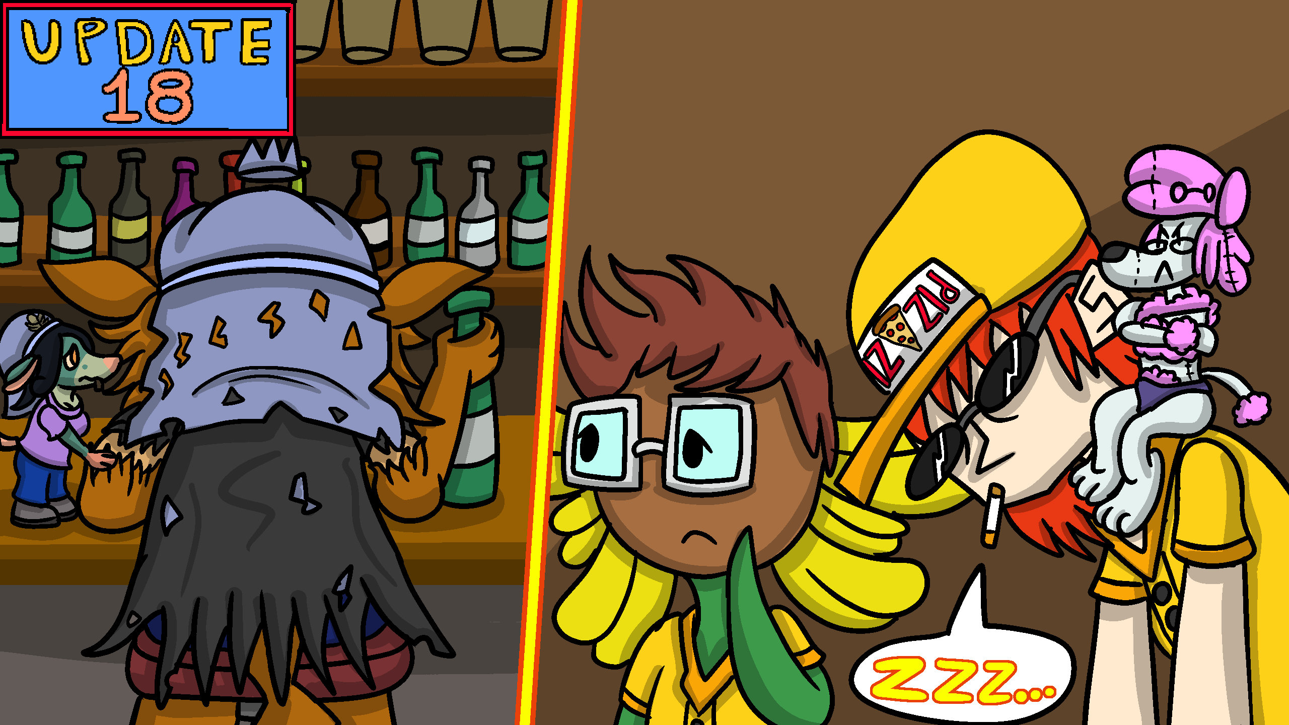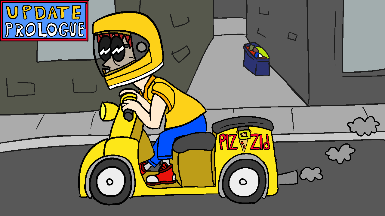 The quest will be cut into 3 sections, a prologue, the 30 update countdown, and then an epilogue. Right now, we’ll be going through the prologue before we start the countdown. Sometime before we begin the countdown, I will explain the rules. But as of now, the prologue will just introduce characters and this world, and getting yourselves prepared for the pizza guy’s next delivery.