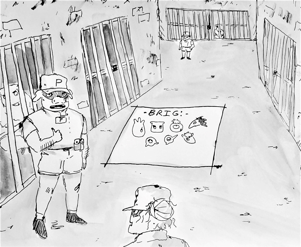 >"Took you long enough." Captain STEVE is sitting in a chair against the wall. He looks about as well-rested as you, and about as unhappy as Dane.