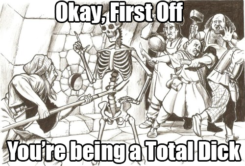 Praise to the Dark Gods specifically, the skeletons are only at the one gate. Well, near town, anyway. But no sooner are the doors shut behind you than Heather is failing to march in grim silence like a civilized person again.