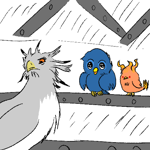On cue, the cranky secretary bird Tianna swoops once again to the table to settle the dispute.