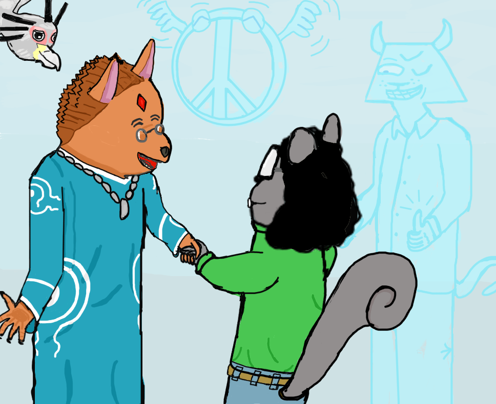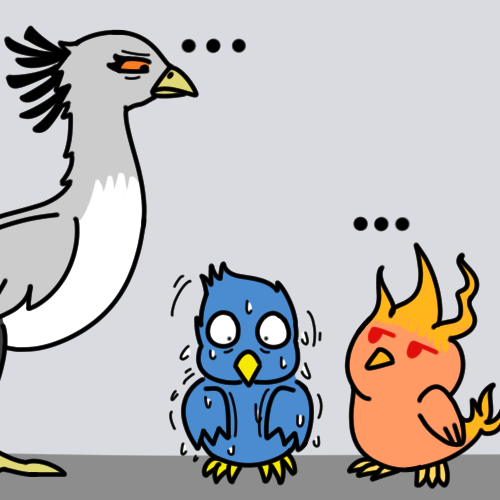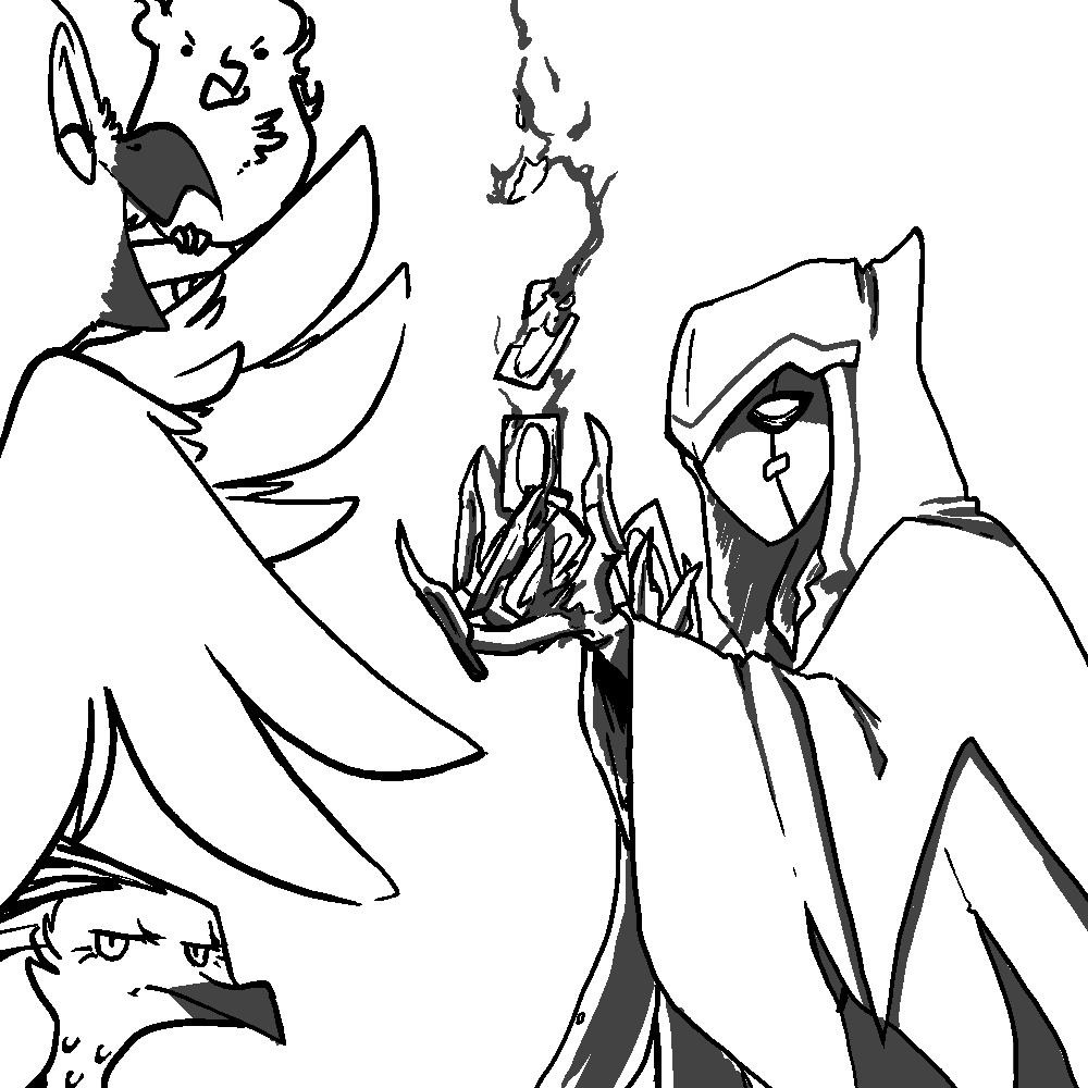 “Hey, if you wish to strip me of my power, you will have to come and TAKE it!” the bellicose blade goads the feathery judge, who simply ignores them.