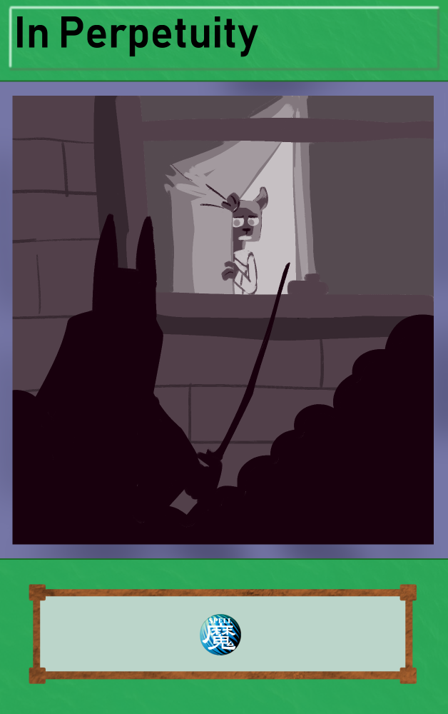 Back at the table, the spell card activates, shrinking Dusty into a young, bright blue, marketable version of herself; her being now a minor, Jekesson’s defense rises to 2600 points.