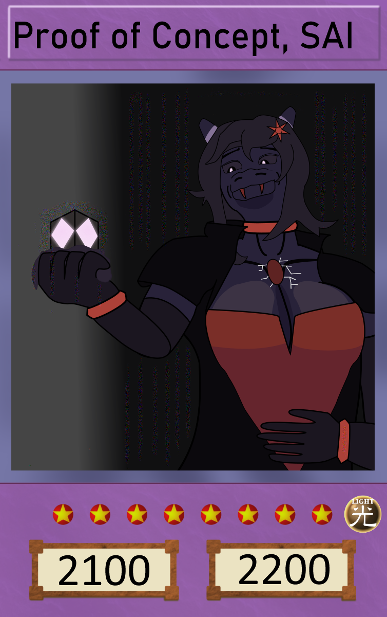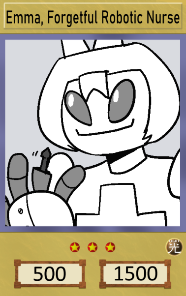 “Now let’s see here…” Strawberi says, drawing two cards and raising them to eye level, “Aha! I told you it only takes one good draw to turn the tables, watch and learn! I summon Godrender, Eager Blade.