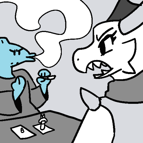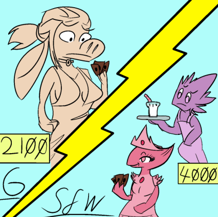 “How dare you!” Strawberi lifts herself in her seat in indignation. She hears Warwick stifling a chuckle, to which she tips him slightly with her hand, making him fall off his stool.