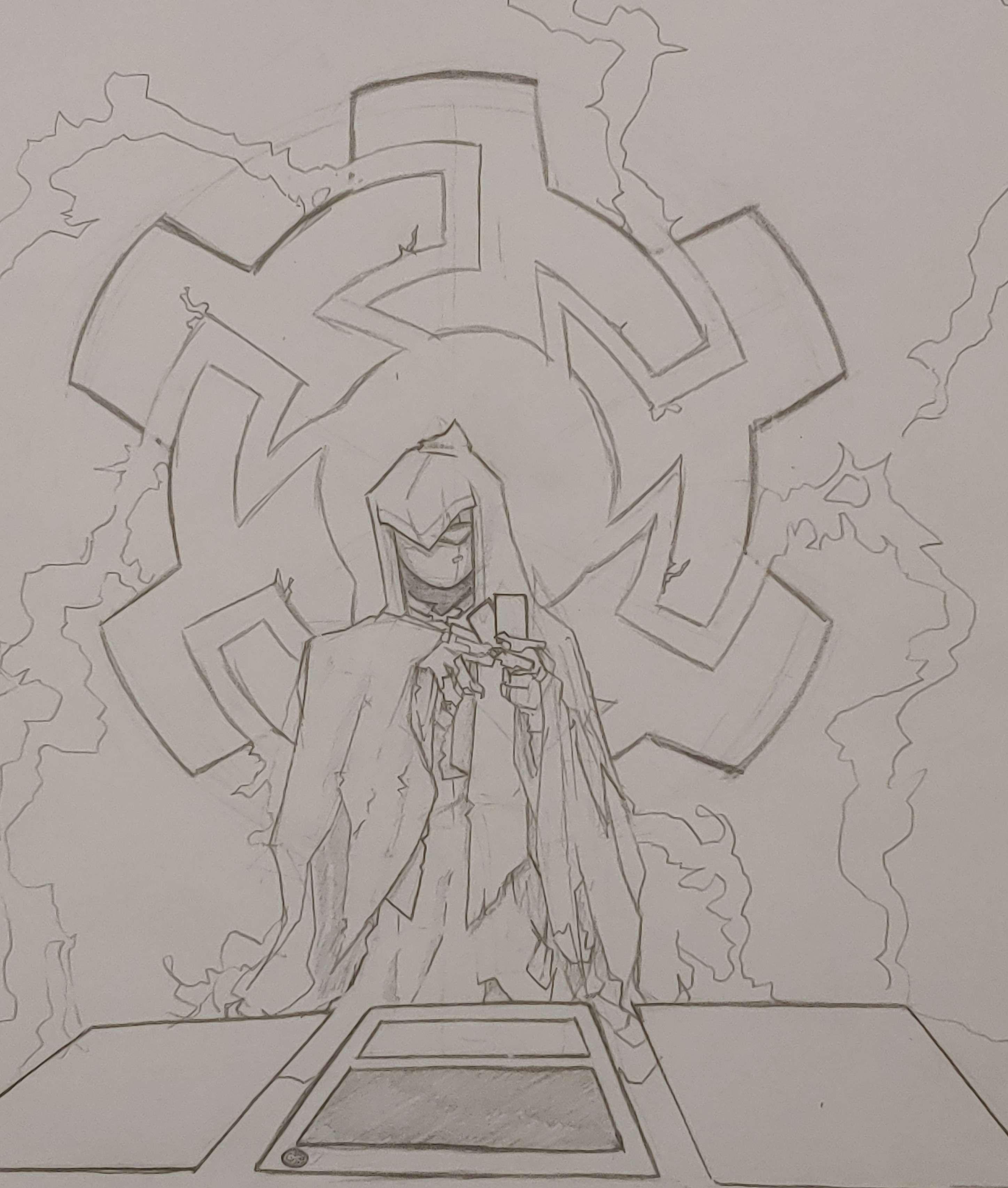 “R-right,” Ceridwen hesitantly draws a card as she witnesses the display. As she sees what card she picked, however, her eyes grow wide, “Ha! Get ready to say hello again, because guess who’s back for round 2? I tribute Germ and my face-down Cryluk (sorry guys), to summon Dusty, Egg Caretaker back onto the field!”