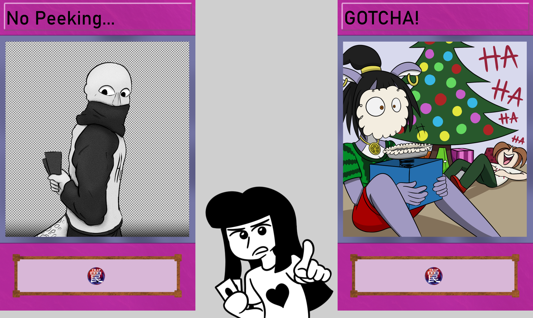 Strawberi lets an exasperated shrill pass through her clenched teeth, before finally sitting back down and grumpily drawing a card, an attitude which changes once she sees what the card is.
