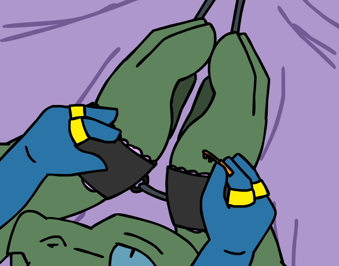 Sebak: “I have to ask, opal…” looking down at her, you smile back, “Just how many notches on your tummy came out birds?” Pulling on the chains you’re bound in, you hear the bed creak a bit, “Because taming a beast like myself is indeed impressive…”