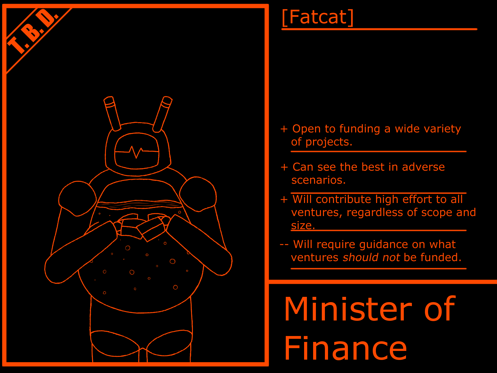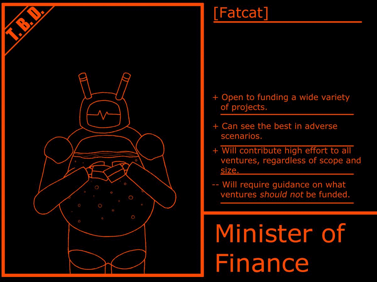 I suppose [Fatcat] will be the hardest to manage in the bunch, constantly wanting to spend even if we don’t have the [funding] to do so. [Banker] however sounds like they would be pretty adept at managing themselves. But…