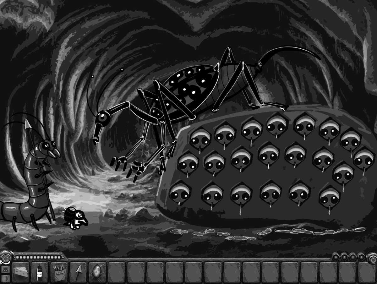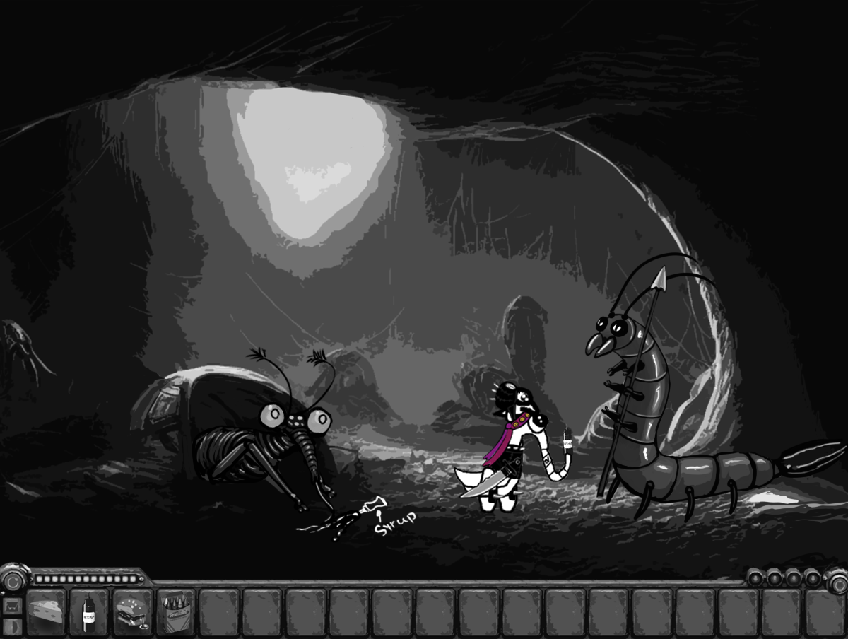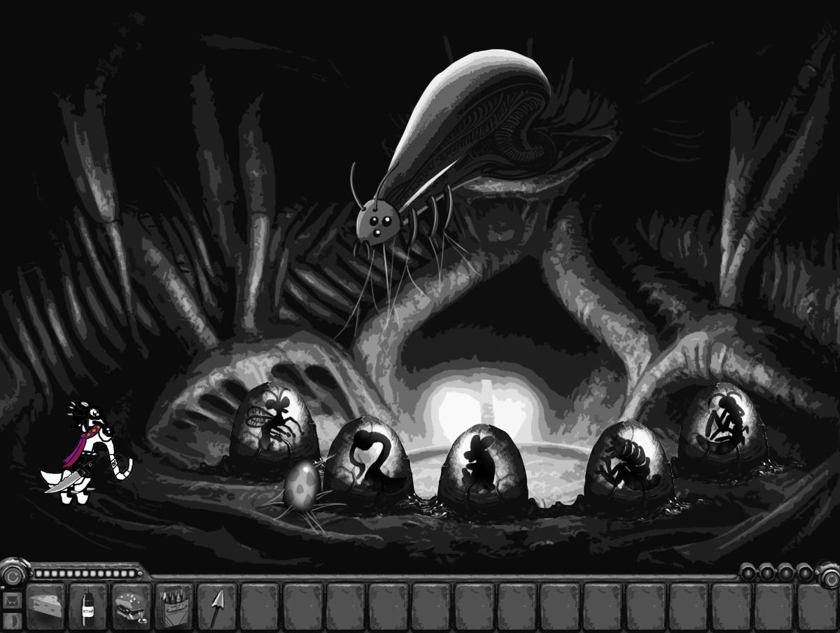 (The big bug leaves eggluk alone with the grubs)