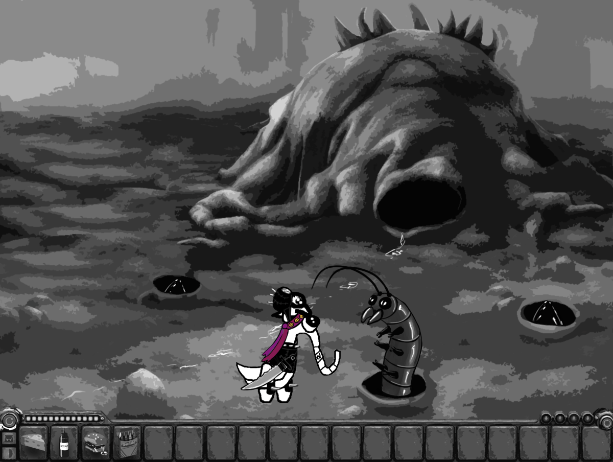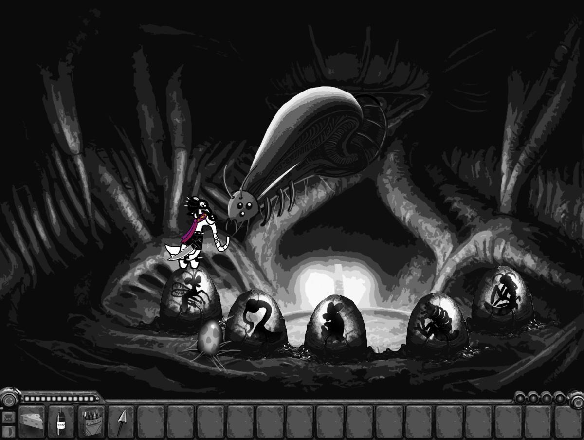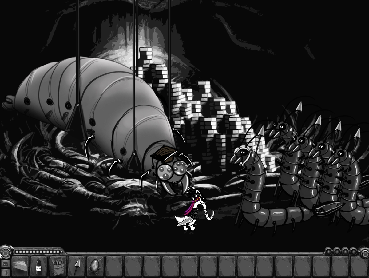 (The big bug leaves eggluk alone with the grubs)