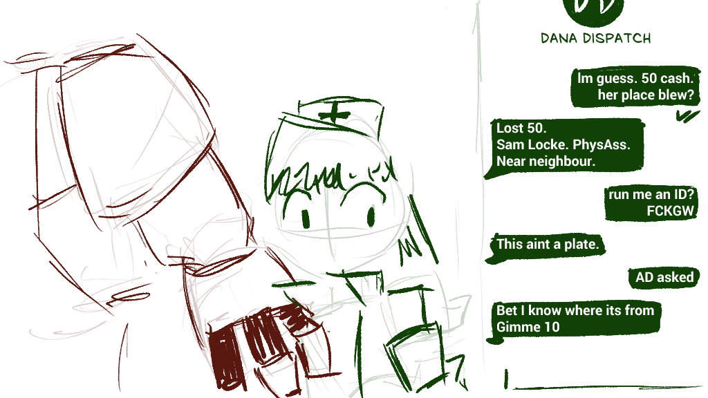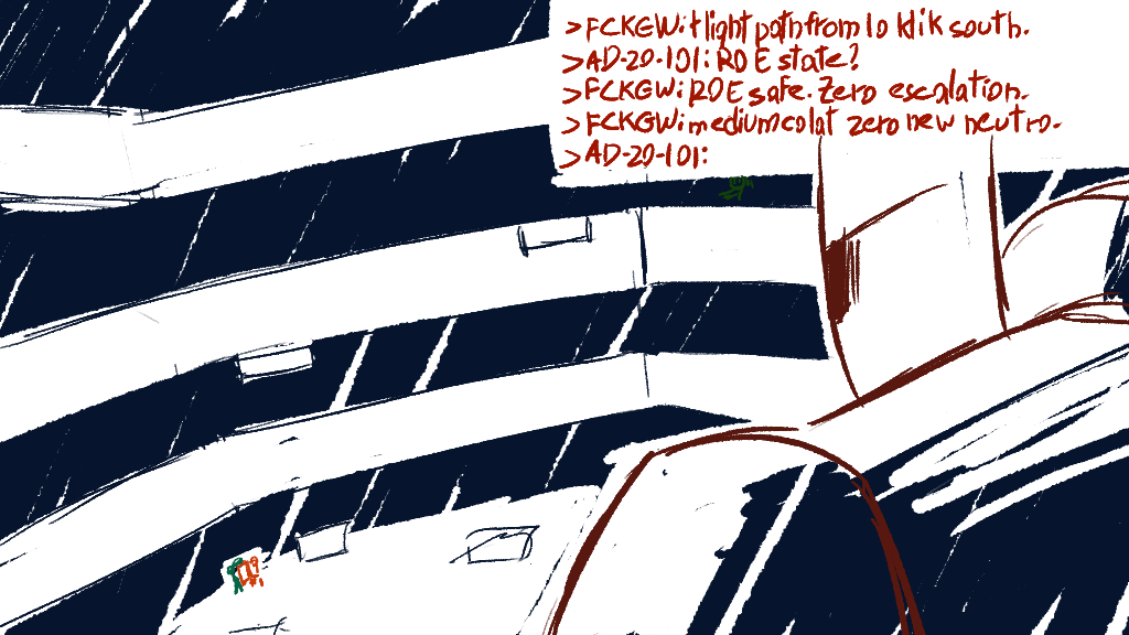 How does your GPS module distinguish between civvie (green) and foe (red) marks, by the way? Are they marked as such by dispatch? Do they give themselves away by having weapons equipped? See if you spot the northmost blip from the atrium. If not, try quickly sneaking upstairs via the maint tunnels while the trashcan does its ruckus (without andrews and the wounded, obv) and see if you can scout em out - dont engage, of course. Hopefully they would be distracted enough to not spot us.