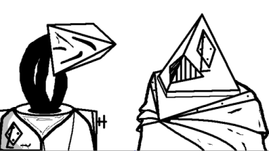 A paper filled with scribbled afterlife symbols. Can you guys read that writing, please? I'm having a hard time doing so.