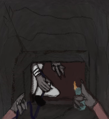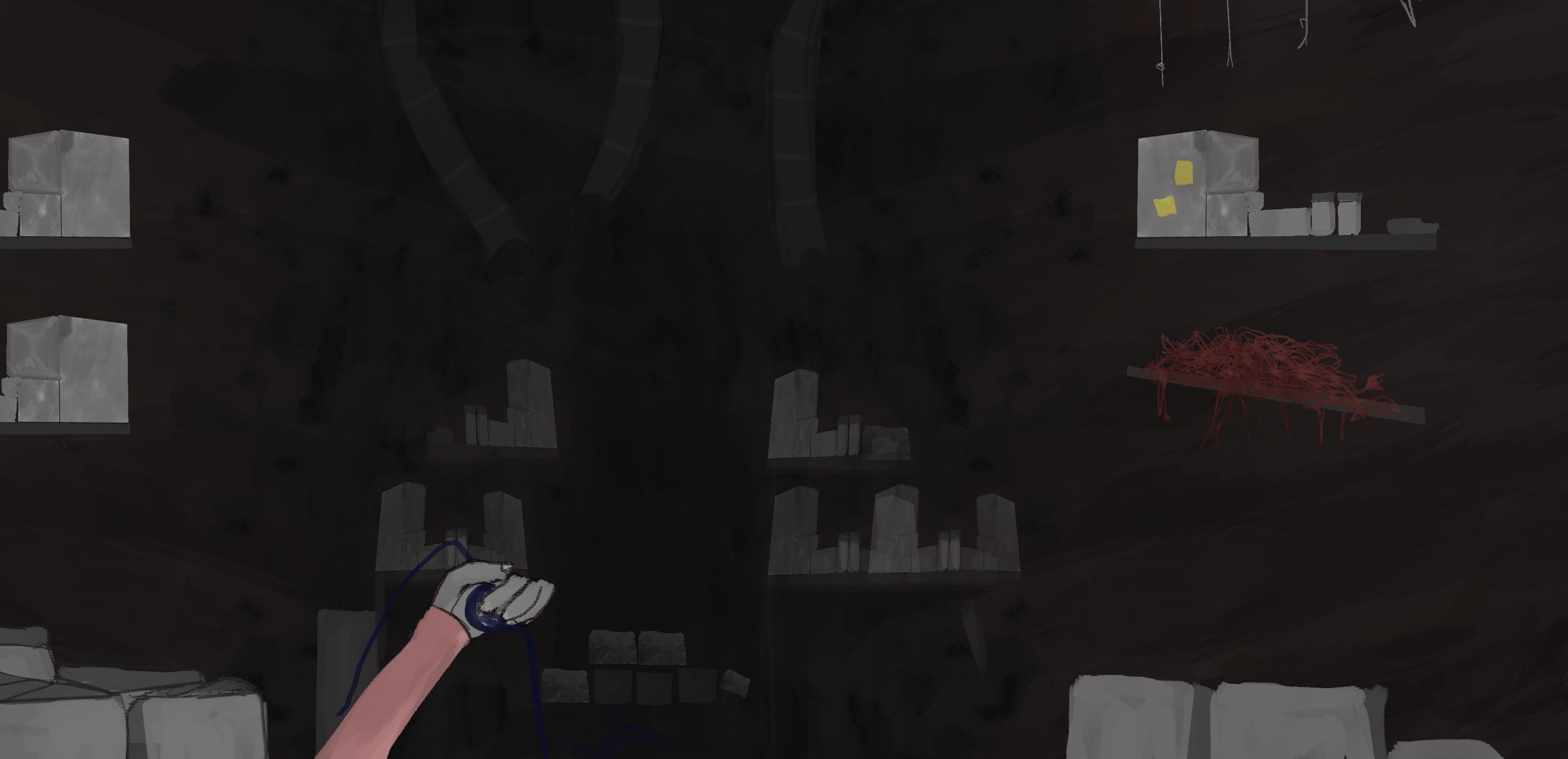 SC is moving further down the halls, as he moves away you feel colder, that lighter must have been keeping you warm, on each door SC passes by, he stops to place an ear to it; before moving forward, he only seems to do it on the doors to the left , after checking each door he mutters “safe” before moving to the next, you still stand at the door you entered from; you can hear the sound of metal under pressure and rushing liquids to your sides.