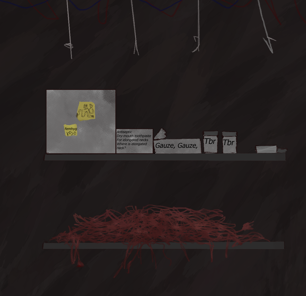 When i woke up i realized i would eventually need to find food, water; i moved slow, made it to the kitchen
