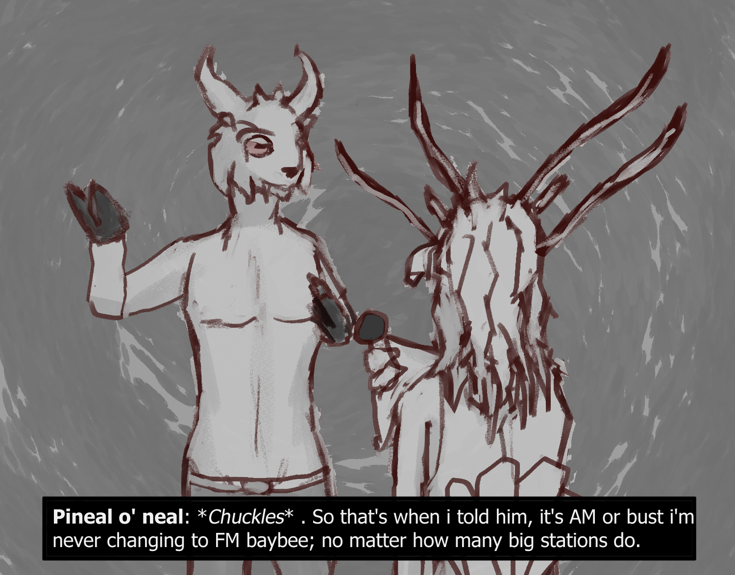 SC: I think there is someone else in here; there's been a lot of noise coming from above, the sounds of hooves against the floor , you don't have those so i can discard you