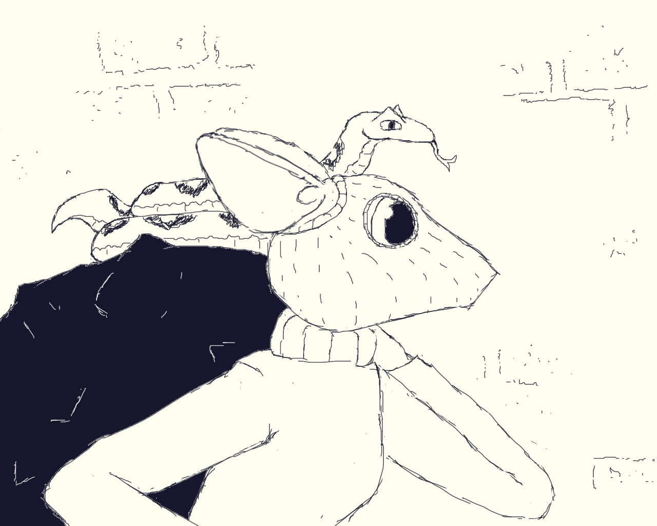 The old rabbit tosses a blue, triangular crystal into a worn but ornate box. It bounces a bit before settling, adding that tiny bit more of scratches already marked all over the wood. She takes a moment to gauge things.