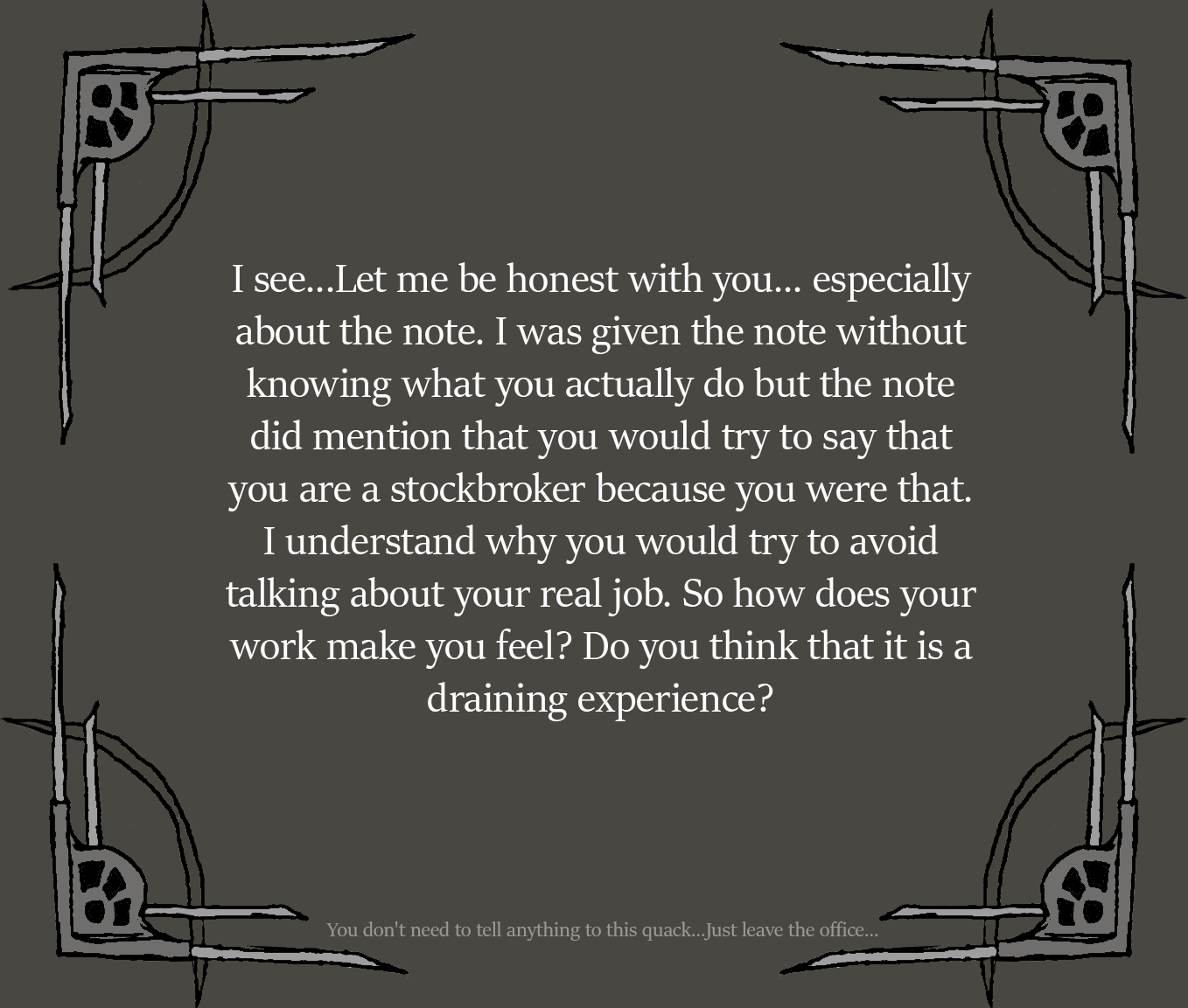 A short quest about dealing with the troubles of your daily work hours.