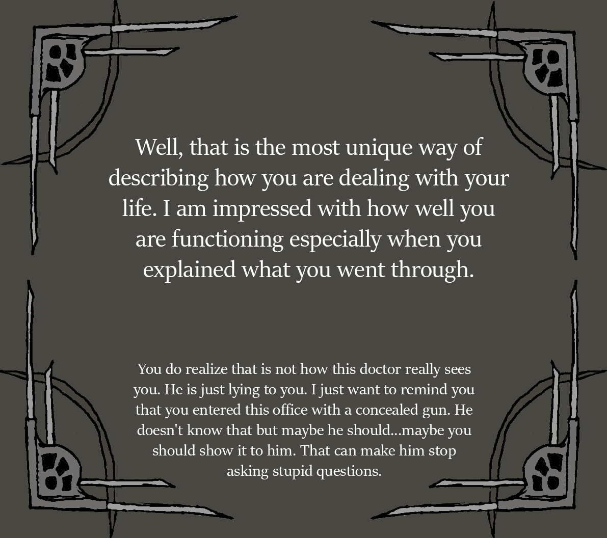 Even if this is a twisted shade of reality, its now more mindscape than real