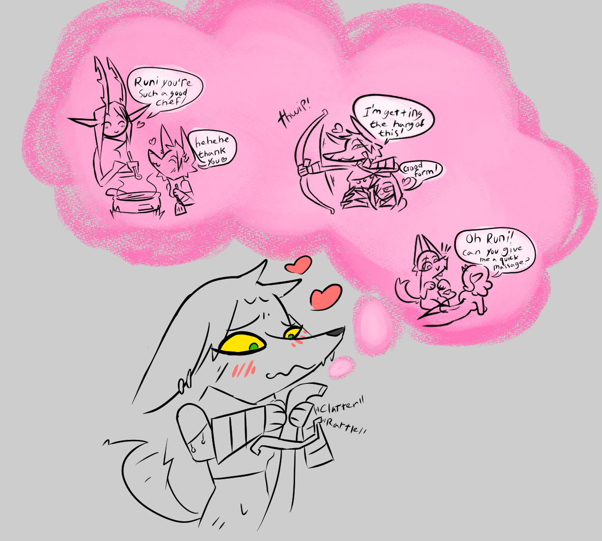 "I want, I uhm... I want you to do it all! I can handle it!" Runi barks.