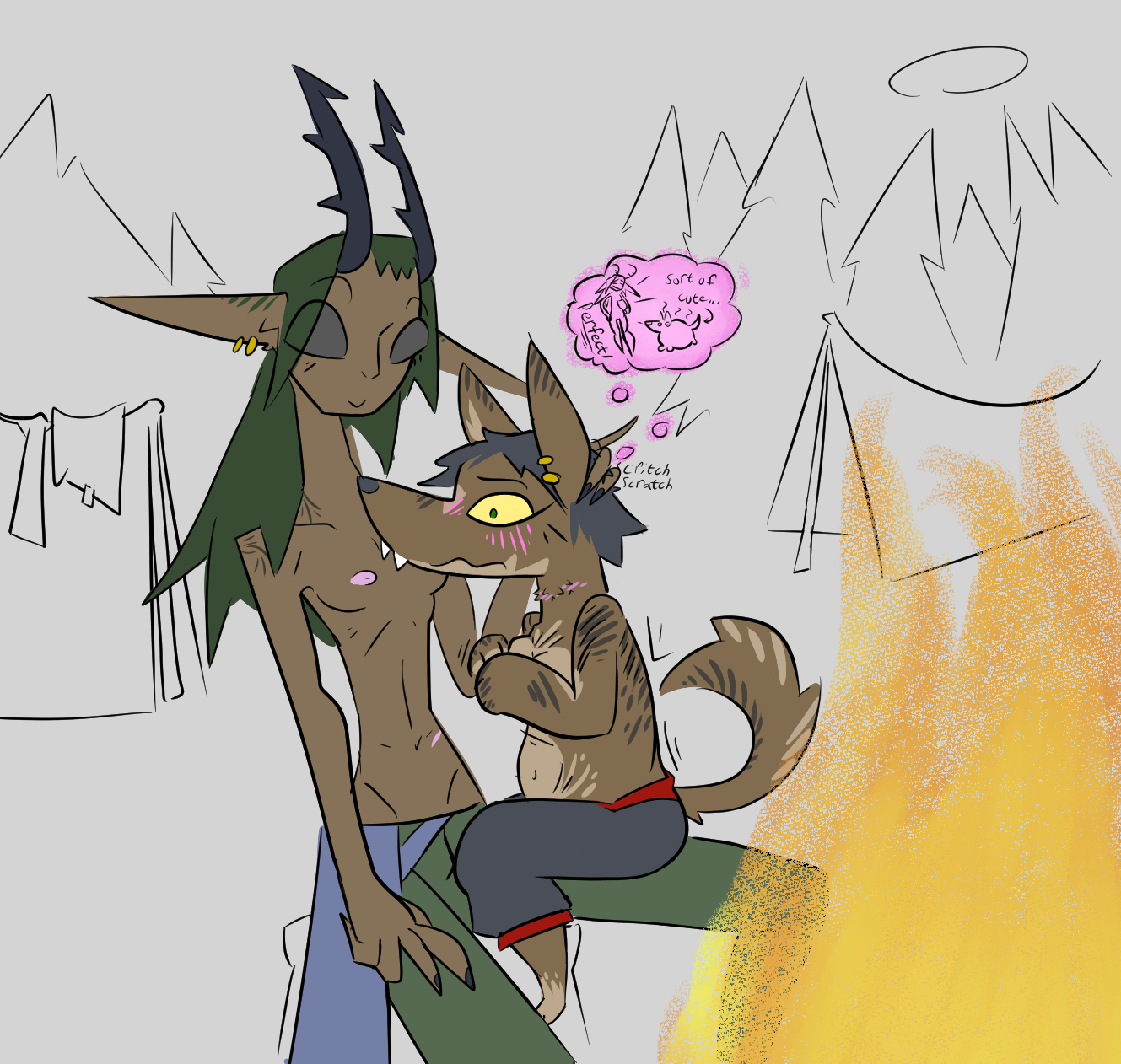 Runi gives Taal a smooch, "I like where we are right now... just curled up together, the fire going, hugging, grinding against your boner..."