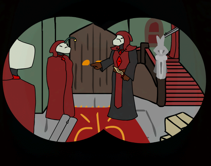 >Skulk around. At least one entity is in here with you, and it would be best if you got the drop on them, rather than the reverse.