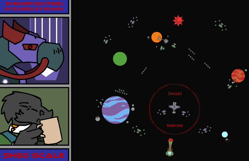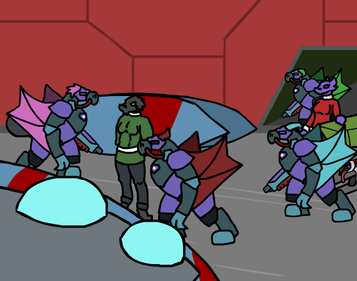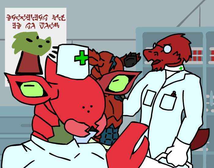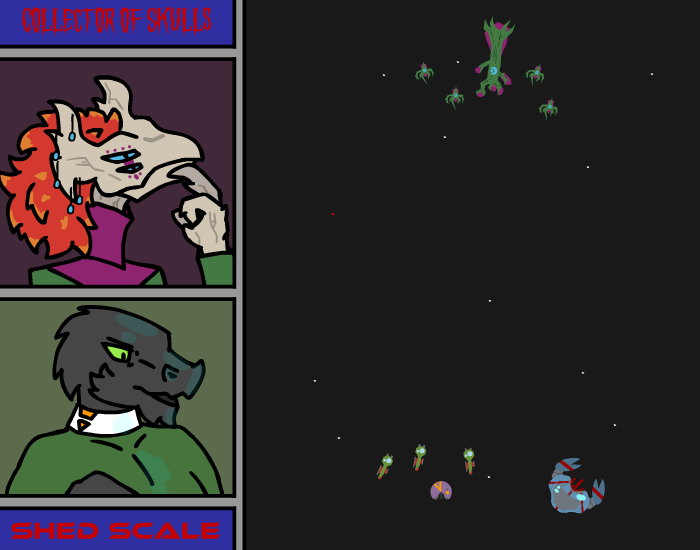 Vul: “…heh. That wasn’t a rebellion.” she gesture towards the map, “They came from beyond the forbidden zone, from outside our part of the galaxy, a completely unknown force. As the Forksa, Khrax and Ek’tall fell to their might, the rest of us united. We might have had our squabbles, our grudges and wars, but in the end this enemy was a threat to us all, thus uniting us under one cause. The Wroknir and Kelshin joined with their massive ship armadas, the Mrrgh and Tuul with their near infinite forces of ground troops, the Korak and Gartag with their intelligence and spy networks, and finally the Xot with their odd technology. Even the Thanro joined us, financing the whole thing. Only the Raolme stayed out of the war, for the most part. We united to create the biggest fighting force this galaxy has ever seen, and what follow what not some paltry rebellion. It was a galaxy wide war, a war for our continued freedom, a war which like we have never seen before. But even as we numbered in the hundreds upon hundreds of billions, with every last secret super weapon and tactic, even with the precursor technology we unearthed, in the end… we lost.” Her body visible tenses for a second, before she sigh and regain her composure, “So no, we cannot fight them directly. We tried that once, when we were at the height of our power, and we failed.”