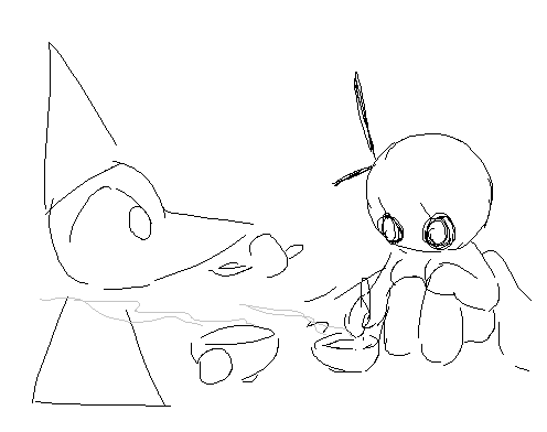 It also appears that the feeding situation has been graciously handled by Treachery (ladder, soup bowl).