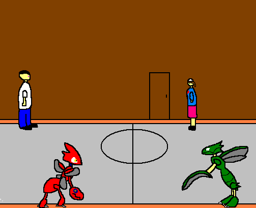 A Scizor appears in the middle of the arena.