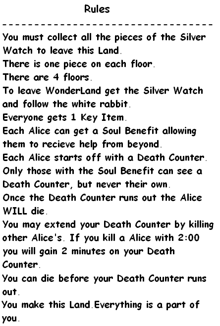 Damnit, you've got less than three minutes until you die, and the only way to get more time is kill the other players? This sucks. So yeah, what's your name? What's that on your face, just an eyepatch? You have anything else that might be your 'Key Item'? Any special abilities or talents? Head right while you're talking, though, we don't have time to waste.