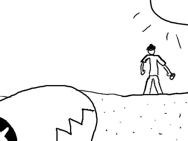 You flee very quickly! Unfortunately, you forgot where your hole was. So, you just decide to go wandering around again. You finally stumble upon a flat road, leading two ways. Off to the right is the mountains, and to the left there's some weird rocks humans put together.