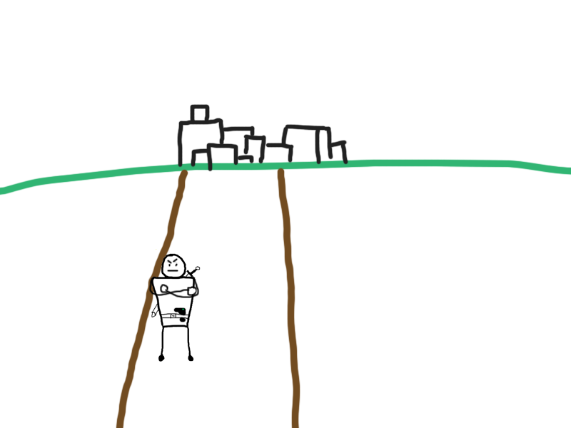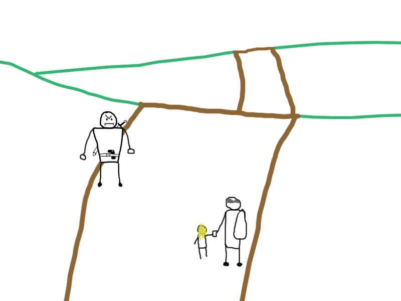 >He gave me the money without a fight, so now I have fifteen gold pieces to get me started in the city. The little girl is on the ground crying. As I walk past I kick dirt in her face. Ha! I'm headed on to the city now, it should be another day's journey at most, when I get there I'll start looking for a follower.