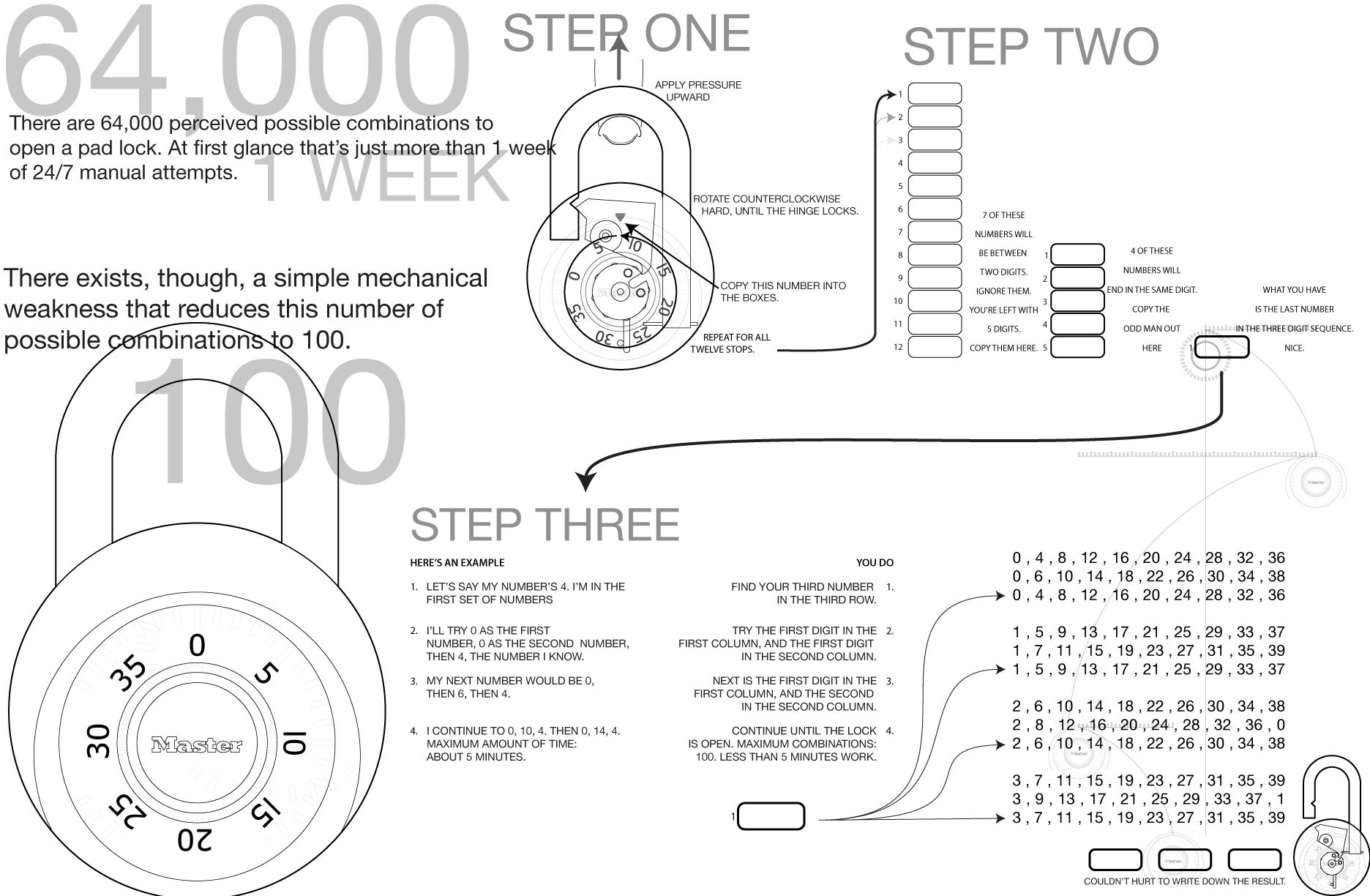 I'm not CRAFTY enough to do anything remotely complicated with the lock! This makes my head spin, I don't know if I could do that. Beside, the lock looks strange enough, maybe it can't be unlocked by simply inputting three numbers like a real combination lock. Maybe there's four, or... five? Or even more. Maybe fifty five. And how to know which one is the good one?