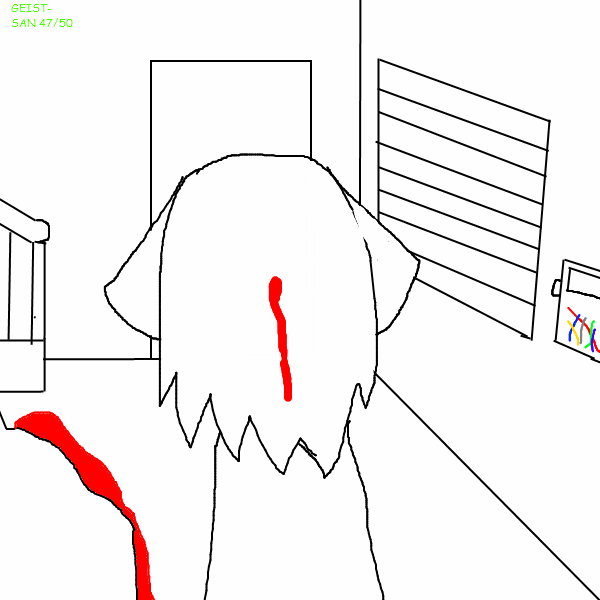 The Girl touchs the back of her head and finds no wound. She looks up to see blood pooling from the ceiling.