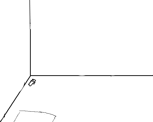 The girl examins the floor to the lower left. It seems to be some sort of door but it's stuck and no amount of pushing or pulling seems to be working on it. There is a small crack, something vey skinny could probably fit through.