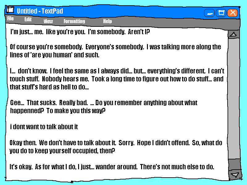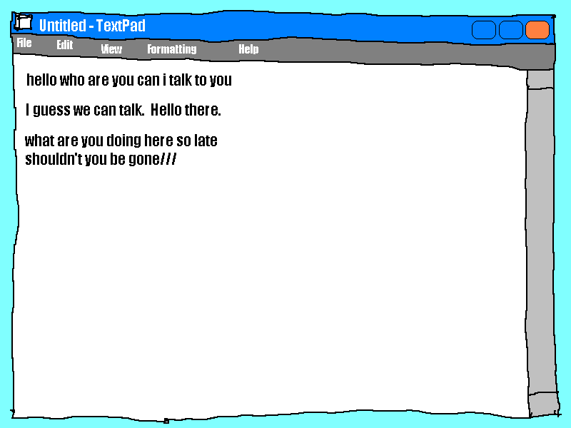 It types its response. I reply. This is a really slow way to carry on a conversation, it seems. It's faster than hunting down paper and pen, though.
