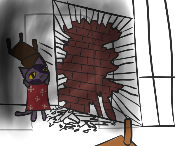 Rather than bloody up his climbing hands/paws/WHATEVS Bob chooses to manlyly charge through the tunnel towards the ladder.