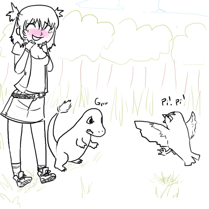 Oak: Wonderful! Over on that table are three Pokemon, so take a look and decide! One of them is yours to keep! Oh, and that's my grandson, Gary.