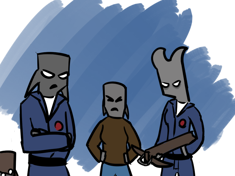 Shitstreak grimaces in anger, pain, and (perhaps) a bit of fear. "I talk," he says. "I talk I talk. What are you wanting to know, exactly?"