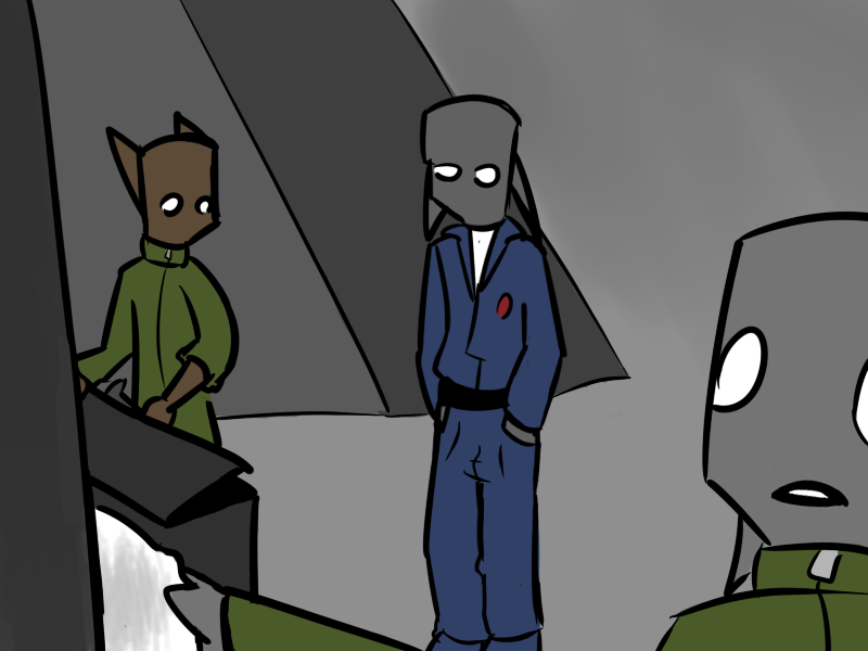 "Now hear this," says Aldo, dropping down to eye level with the agonized Shitstreak. "Here's the game plan. You're going to tell us everything we want to know or else we're going to let you bleed to death through your balls, no?"