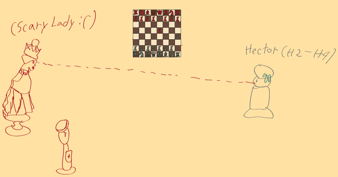 As much fun as it is totally cheat the system, we are generally only allowed one MOVE per TURN. Hector should be okay though, I doubt RED will endanger one of their BISHOPS for a measly PAWN, even one as MANLY as Hector. And besides, we got our GNU in the way!